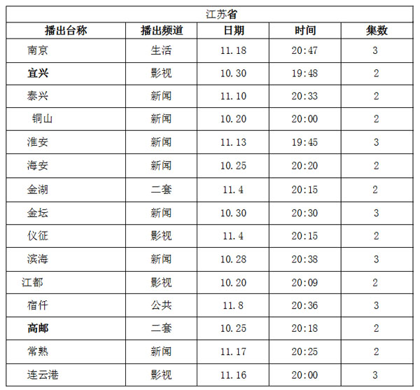 電視廣告分為兩期,目前第一期播放時間于2015年10月起,陸續(xù)在江蘇、河北、湖南、山東、湖北、浙江、四川、云南、廣西、山西、貴州等十個省多家衛(wèi)視黃金時段盛大播出,插播于《信者無敵》電視連續(xù)劇中,敬請關注!!!