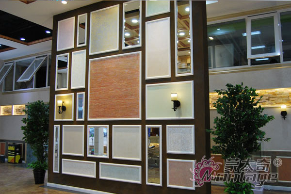 展廳內(nèi)設(shè)有多處個性化的樣板展示區(qū),來合理的成列出蒙太奇品牌各個系列的產(chǎn)品,如:綠色時尚的硅藻泥,高貴、大氣的手工壁紙,精致細(xì)膩的白炭黑,平整如水的藝術(shù)地坪等。