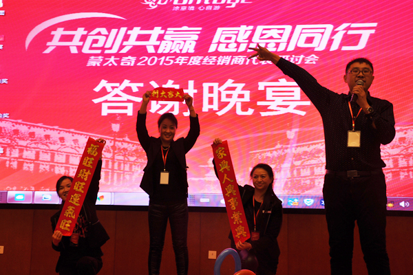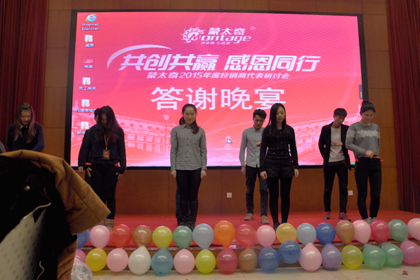 2015年蒙太奇經(jīng)銷商研討會暨公司年會在京勝利召開,晚間為進(jìn)一步促進(jìn)經(jīng)銷商與經(jīng)銷商、經(jīng)銷商與公司員工、領(lǐng)導(dǎo)人與經(jīng)銷商家人之間的交流和溝通。