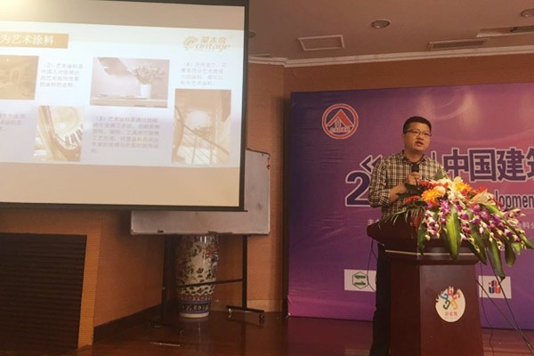 會(huì)議中趙總與各位領(lǐng)導(dǎo)和嘉賓分享了《淺談中國(guó)藝術(shù)涂料現(xiàn)狀》,主要講述內(nèi)容包括:“何為藝術(shù)涂料”“歐美藝術(shù)涂料的發(fā)展與現(xiàn)狀”“中國(guó)藝術(shù)涂料的發(fā)展與現(xiàn)狀”“藝術(shù)涂料的分類與裝飾特點(diǎn)”“藝術(shù)涂料的裝飾應(yīng)用于案例展示”“蒙太奇硅藻泥藝術(shù)涂料的優(yōu)勢(shì)”等,趙總給出了很多建設(shè)性的意見(jiàn)和建議,旨在為推動(dòng)藝術(shù)涂料行業(yè)發(fā)展貢獻(xiàn)蒙太奇品牌的力量。